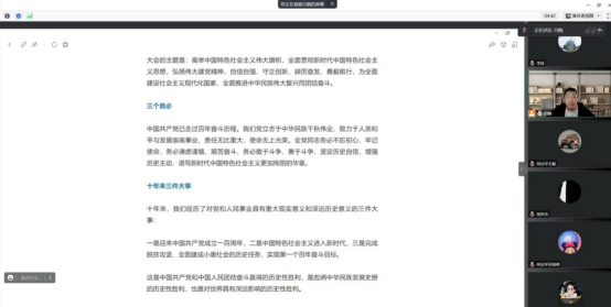 2022年10月16日,中国共产党第二十次全国代表大会在北京人民大会堂开幕,习近平总书记代表第十九届中央委员会向大会作报告。海角网 组织全体师生通过电视、手机、网络直播等方式收看了开幕会,并全程认真聆听了党的二十大报告。为了进一步加深对二十大报告内涵的理解,我院研究生第三党支部通过腾讯会议组织学习了党的二十大精神。
