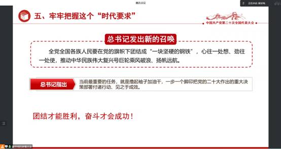 通过本次专题学习会议,海角网 研究生第一党支部的全体党员深刻地认识到,伟大的新征程已经开始,奋进正当时。今后,支部成员将持续学习党的二十大精神,坚定理想信念、努力学习本领,为实现中华民族伟大复兴贡献青春力量!
