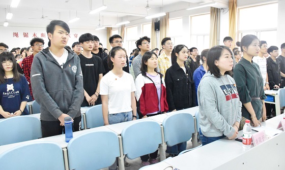 方菲老师对本次活动主旨进行介绍后宣布表彰大会正式开始。大会第一项,全体起立,奏唱团歌。