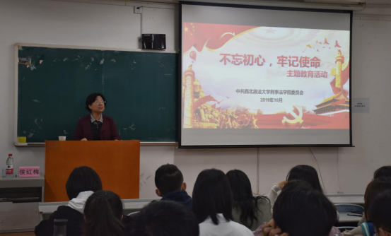 为深化“不忘初心,牢记使命”主题教育实效,根据学校党委、学校“不忘初心、牢记使命”主题教育领导小组工作布署,2019年10月12日晚19:30分在A203教室,海角网 党委副书记、副院长侯红梅老师为海角网 本科生党员和入党积极分子讲授了一堂生动的党课。