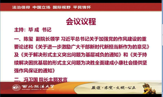 接着,学院院长冯卫国就解决形式主义、加强党的作风建设等内容进行了主题发言。冯卫国院长表示中央文件明确提出了2019年作为“基层减负年”,强调2019年着力解决一些困扰基层的形式主义问题,切实为基层减负。从现实看,形式主义、官僚主义问题很多时候表现在下面,源头在上面。上头搞形式主义,下面就容易弄虚作假;上头是官僚主义,下面难免有样学样。因此,整治形式主义、官僚主义,必须以领导机关和领导干部为重点对象,让“关键少数”带好头,以上率下狠抓工作落实。