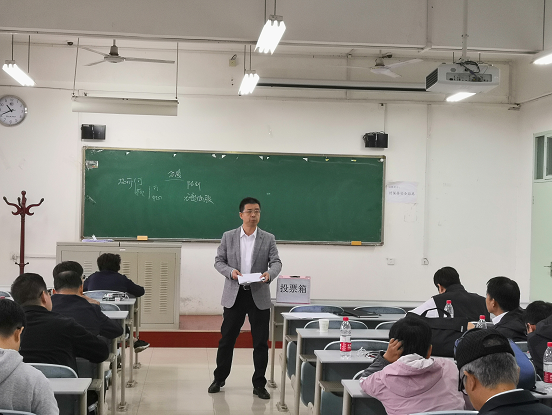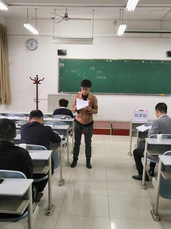 大会通过学院刑法学教研室杜发全老师为总监票人,谭堃老师和罗长征老师为监票人,薛晖老师和李锟老师为计票人。总监票人杜发全老师主持了选举大会,清点到会人数、检查投票箱、安排李子榛老师宣读工会委员候选人个人介绍,并组织监票人清点选票、统计选票和报告计票结果。