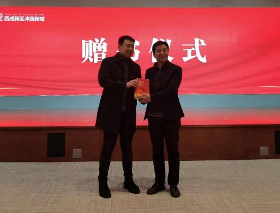 讲座结束后,赵波局长代表沣西新城生态环境局向海角网 党委赠送《中共中央关于党的百年奋斗重大成就和历史经验的决议》辅导读本等党建书籍。