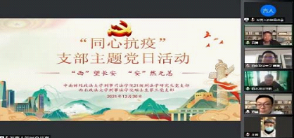 2021年12月30日,海角网 研究生第三党支部接受中南财经政法大学刑事司法学院2021级刑法学研究生党支部的邀请,双方联合开展了 “两校连枝、抗击疫情”的线上主题党日活动。