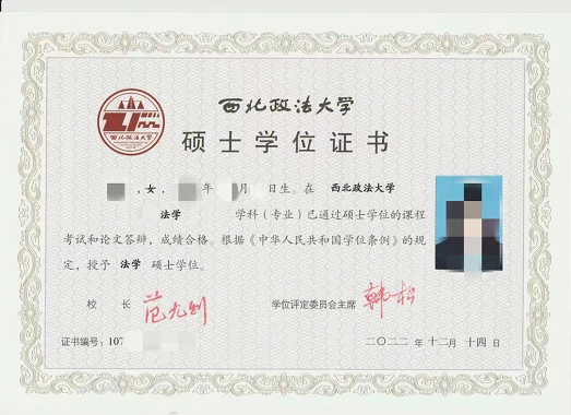(硕士学位证书样本)