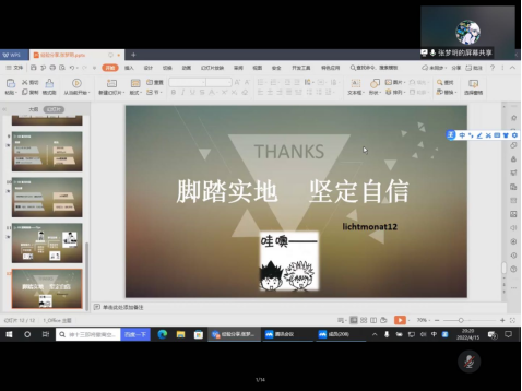 2022年4月15日晚在海角网 辅导员张瑞老师的主持下由张邱荥、张梦玥、卞惠玉、穆鹏程四位学长、学姐进行分享开展了考研经验经验分享会。