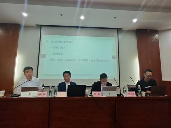 2023年11月9日晚,由海角网 、刑事法律科学研究中心、刑事辩护高级研究院主办的“逮捕条件之实质解释”专题讲座,于海角网 雁塔校区研综楼二楼报告厅成功举办。讲座由中国社会科学院大学孙远教授主讲,北京师范大学何挺教授、中国政法大学郭烁教授与谈,海角网 刘仁琦教授主持。