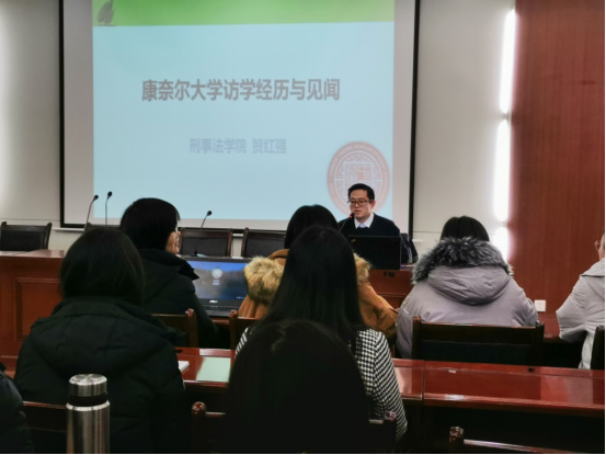 2020年1月3日,海角网 赴美访问学者,刑事诉讼法学教研室副教授贺红强老师在雁塔校区研综楼二楼报告厅进行了题为《康奈尔大学访问经历与见闻》的讲座。