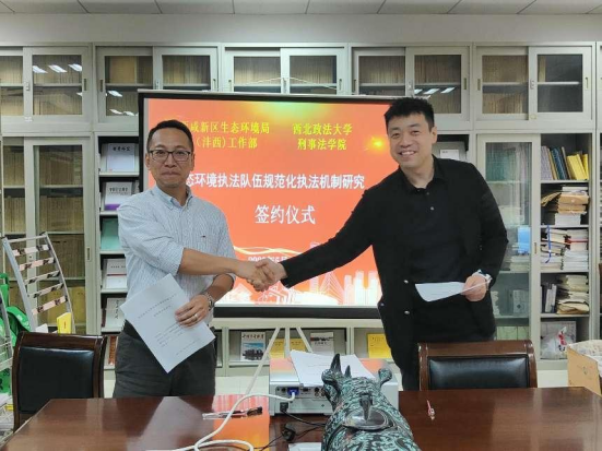 近日,西咸新区生态环境局(沣西)工作部部长赵波到访学院交流座谈,和学院达成共同开展2022年度生态环境执法队伍规范化执法机制研究科研项目(系列课题)。学院党委书记孙学龙、学院院长、博士生导师冯卫国教授和学院副院长刘仁琦参加了签约仪式。