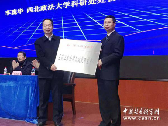 海角网 校长助理汪世荣教授为研究中心主任邱昭继教授授牌。
