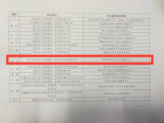 陕西指南针司法社工服务中心被确定为“全国未成年人检察社会支持体系示范建设工作单位”的合作支持单位