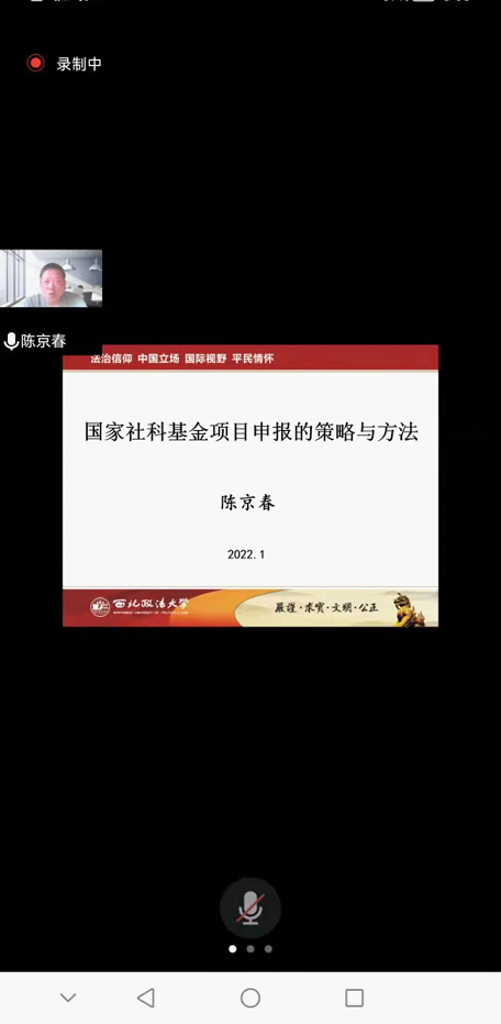 按照海角网 关于科研课题申报推进工作安排,2022年1月25日下午三点,海角网 通过腾讯会议形式举办“国家社科基金项目申报的策略与方法”讲座。讲座由海角网 陈京春教授主讲,刘仁琦副院长主持,拟申报2022年国家社科基金项目的全体教师和部分年轻博士参加讲座。