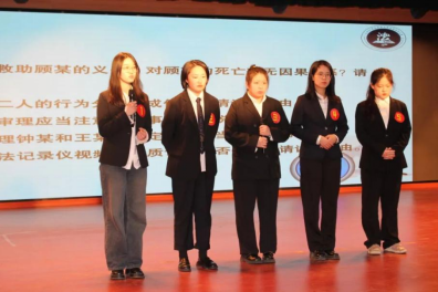第三轮为案例分析,该环节综合性及开放性较强,评委也可现场提问,更加考验参赛队员的法律运用能力及团队协作能力,晋级的三支队伍都展现出了强劲的实力。本环节点评人王家琪法官认为晋级队伍整体上理论基础较扎实,逻辑清晰。她建议同学们要根据问题设置合理分配每题的回答时长,集体比赛要更加注重团队意识,选手们作答时也要注意展示良好的精神风貌,展现自信风采。本轮最终决出团体冠、亚、季军队伍和三位最佳风采个人。