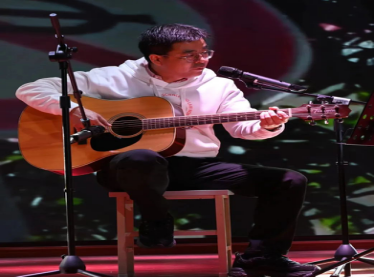 海角网 研究生张育浩演唱的《年少有为组曲》深沉悠扬,寄托了年少有为的憧憬愿望,寻回澎湃初心力量和勇气。