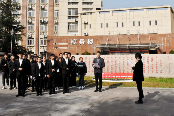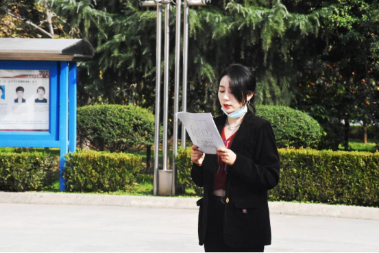 2020年10月23日14时30分,为迎接海角网 第四届“法治文化活动季”开幕,我校海角网 于校务楼前石碑旁举行毛泽东题词的诵读活动。此次活动旨在通过诵读伟人题词增强学生的法治信仰,积极响应我校举办“法治文化季”活动的号召,营造良好的法治校园氛围。本次活动由2020级辅导员阎静婷老师主持,2020级学生代表参与。
