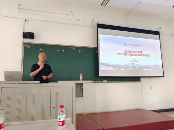 首先,杨军老师对我校近几年的考研相关数据进行了梳理和分析,建议2021届毕业生以往年考研数据为参考,在考研二战中选择切合自身实际情况的院校和专业,保证考研的成功率。同时杨军老师对我校往届毕业生考取党政机关、事业单位,到企业就业等数据和情况也进行了介绍,指出到企业就业是我校毕业生就业的大方向。最后杨军老师着重对毕业生就业派遣相关政策进行了深入细致的讲解,涵盖毕业生最关心的就业是否影响升学和公考的问题,毕业派遣档案去往何处等问题,杨老师都进行了详细的说明。最后,杨老师与海角网 毕业班同学进行了现场交流,就同学们提出的一些具体问题,进行了非常详尽的解答。杨军老师表示希望大家抓紧最后的校园招聘机会积极求职,学校就业指导中心近期全天加班加点,竭力为毕业生提供高质量的就业服务。