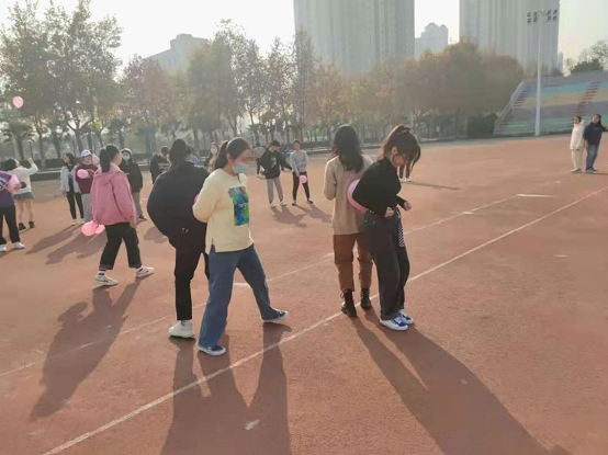 活动主要由各班心理委员和班长负责前期策划和具体实施,同学们集思广益、建言献策,积极参与。2021级1班和2班的同学相聚田径场,进行了“绑腿跑”、“背夹球竞速”、“鼓颠球”等项目,陌生和隔阂在他们一起商量对策,一起应对挑战时逐渐消解。3班的同学分小组团队合作了开展了“六人七足”、“踢毽子”、“运乒乓球接力赛”等游戏。他们在合作中求进步,在团结中相熟识。4班同学的“贴面”和“击鼓传花”游戏带来了小小的刺激 ,“歌词接龙”拉进了彼此间的距离,活动中欢声笑语不断。5班素质拓展活动由“守护天使”开启,还举行了“戏精的修养”和“老狼老狼几点了”两个游戏,大家的手握在一起,把同学们自初见相识那一刻就注定的友谊牢牢握住。
