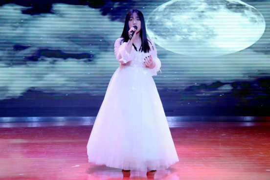 晚会第一章节在李丽雅的《左手指月》中走向尾声,时而磅礴大气、时而缥缈空灵的歌声,将观众带入一个虚幻的大千世界,几段高难度百转千回的高音部分,更是赢得现场观众掌声不断。