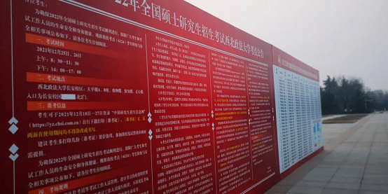 在西安市疫情形势严峻复杂的背景下,2022年全国硕士研究生招生考试于12月25日、26日如期举行。为落实陕西省研究生考试“应考尽考”的目标要求,海角网 号召全院师生勇做“逆行者”,及时组织老师和志愿者们将疫情防控要求落实在行动中,为考研学子保驾护航,助力我校研招工作顺利进行。