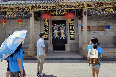 在蔡主任的带领下,队员们依次参观调研了蔡氏宗祠、官仓社区村史馆和三家巷古村落等客家文化场所。官仓社区以创建特色精品村建设为抓手,挖掘、利用本地特色文化优势,以弘扬客家传统文化艺术,打造樟木头特色客家镇。