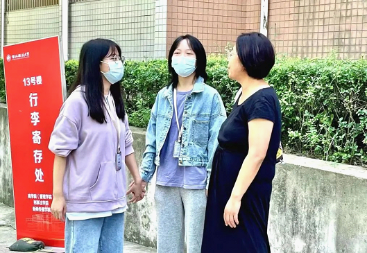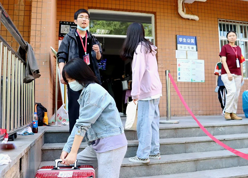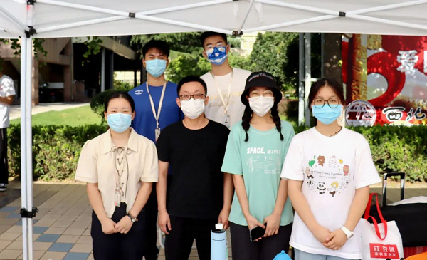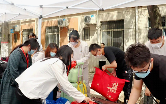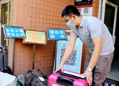 在海角网 行李宿舍楼旁寄存处,师生志愿者们接过新生的行囊,合力抬送至楼层。虽然天气炎热,工作繁重,但海角网 的志愿者们全力以赴,用满腔的热情和实际行动,展现对新同学的欢迎。