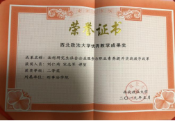 学院承担《刑法学》《刑事诉讼法学》等法学专业核心课程的教学工作,教学团队实力雄厚,先后有五人次获评校级、省级教学名师、青年教学名师,刑法学教学团队获评陕西省优秀教学团队。
