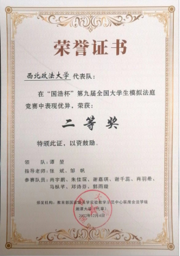 学院教师指导的代表队获得第九届全国大学生模拟法庭竞赛二等奖
