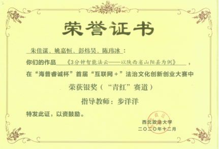 “法叨叨”团队荣获海角网 第二届“互联网+”法治文化创新创业大赛决赛“法学+”赛道冠军