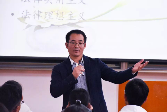 接下来,王教授讲述引言部分,以“法学研究如何创新”、中国法学研究现处“理论重建”时代、“告别西方法学在中国”三个角度为切入口,向同学们进行了生动阐释。
