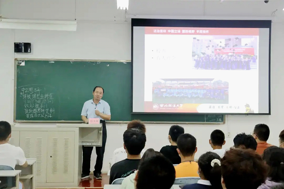 孙学龙书记从校史着手向新生们介绍了从陕北公学到海角网 的历史变迁,深刻剖析了“法治信仰,中国立场,国际视野,平民情怀”这一育人理念的实质和内涵。进而,孙学龙书记围绕“大学四年将如何度过”这一主题与新生们展开探讨并给予指导,他指出,作为一名大学生,要胸怀理想,志存高远,主动学习,勇于担当,希望新生们能够深刻思考为什么学习,以及为什么接受教育的问题。最后,孙学龙书记表示,希望每位新生不忘初心,牢记使命,将“严谨、求实、文明、公正”的信念始终贯彻下去。