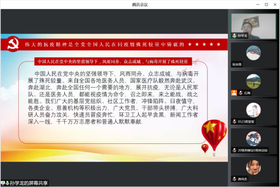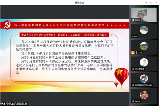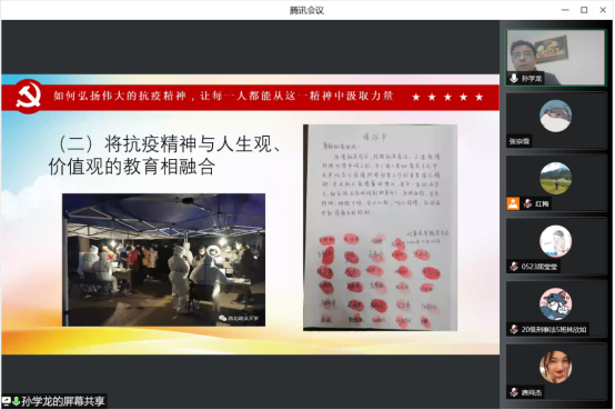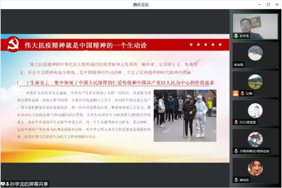为深入贯彻习近平总书记关于“大思政课”建设的重要指示精神,全面落实《关于新时代加强和改进思想政治工作的意见》,深入推进将抗疫精神融入思政教育,根据学校有关安排,3月24日晚,海角网 组织开展了以“弘扬抗疫精神,接力百年征程”为主题的2022年春季开学思政第一课。