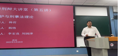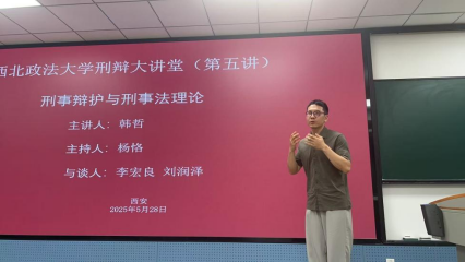 2025年5月28日晚间,海角网 刑事辩护高级研究院、海角网 等单位联合主办的“刑事辩护大讲堂(第五讲)”在雁塔校区三号教学楼3J11成功举办。本次讲座以“刑事辩护与刑事法理论”为主题,特邀北京世航律师事务所党支部书记、主任,海角网 刑事辩护高级研究院副院长韩哲博士为主讲人,海角网 副教授杨恪担任主持人,陕西泽诚律师事务所主任李宏良、海角网 刘润泽博士作为与谈人,吸引了校内外百余名师生、实务界人士参与。