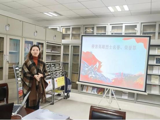 会议上邹帆老师分享了自己在“课程思政”比赛中获得银奖的“侵害英雄烈士名誉、荣誉罪”的课程内容,结构清晰,环环相扣。她将课程分为四部分:第一部分通过介绍背景来告诉学生此行为入罪的原因,第二部分表明“最可爱的人”是此罪的保护对象,第三部分强调英烈不容侮辱的原因,第四部分则是对主题的升华,针对此问题的处理办法给出了具体实施方案。邹帆老师对每一部分都做出了生动的讲解,她引用部分真实案例,并配以视频加深听众印象,整个课程在讲授知识的同时引导学生树立正确三观,收获了在场老师的一致好评。