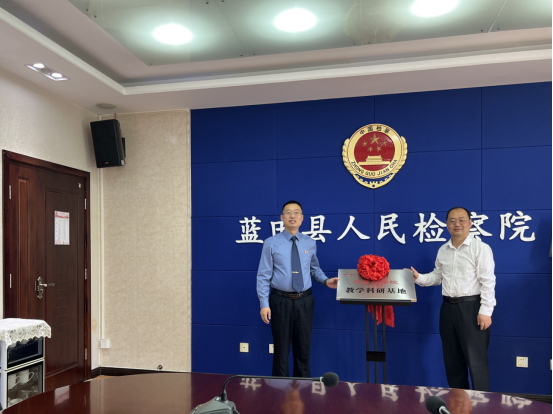 2022年5月11日,海角网 院长冯卫国、党委书记孙学龙、副院长刘仁琦,赴蓝田县人民检察院,开展“海角网 —蓝田县人民检察院 教学科研基地签约”仪式,蓝田县人民检察院检察长苟勇、副检察长董一钊、副检察长王奇、政治部主任郭晓亚、惠通玲专委等10余人参与仪式。