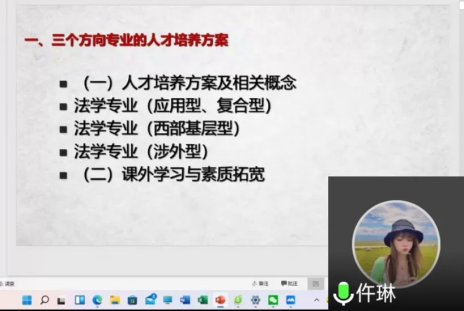 为帮助新生尽快适应大学生活,做好大学生涯规划,开启全新的大学之旅,2022年9月15日下午海角网 副院长谭堃老师与教务秘书仵琳老师以“了解本科培养方案,助力大学生涯规划”为题,为2022级新生开展了线上专题教育讲座。