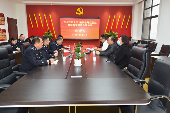 2022年11月18日下午,院长冯卫国、正处级组织员侯红梅、副院长刘仁琦出席“海角网 ——陕西省马栏监狱 普法教育框架合作协议”签约仪式。海角网 、陕西省马栏监狱将以项目合作的形式开展针对服刑人员的普法宣传工作,共同研发普法微视频、普法主题讲座、普法宣传册、普法宣传栏、普法栏目剧等多种普法宣传模式,创新法制教育,提升普法效果;并在学生实习实训、业务交流、科学研究等方面展开合作、交流。