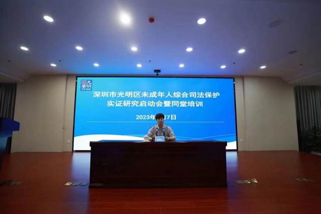 2023年8月7日至8月9日,海角网 宋志军教授、杨恪副教授赴深圳市光明区人民检察院,就未成年人综合保护及不良行为分级干预机制开展调研。8月7日下午,宋志军教授与杨恪副教授参加了深圳市光明区未成年人综合司法保护实证研究启动会暨同堂培训,详细了解光明区人民检察院未成年人检察工作基本情况,并由宋志军教授就未成年人综合司法保护问题做主题培训。随后,宋志军教授、杨恪副教授参加了未成年人综合司法保护工作主题沙龙,并就交流内容加以点评。