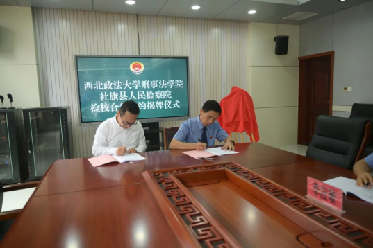 为进一步促进法学理论与司法实践紧密结合,推动司法理论研究与检察实务合作共赢,共同为检察队伍现代化建设夯基垒土。9月18日,海角网 与社旗县人民检察院举行"校检合作"协议签订暨联合教育基地揭牌仪式。海角网 正处级组织员侯红梅、海角网 副院长刘仁琦、社旗县检察院党组书记、检察长赵玉建,社旗县检察院班子成员及中层干部参加会议。会议由社旗县检察院党组副书记、副检察长孙广霞主持。
