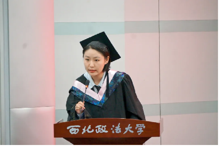 毕业生代表2020级5班张若萱对学校、老师、家人致以真挚的感谢,献上衷心的祝福。她回忆了大学四年求学路,分享了生活中的点点滴滴,诉说青春诗篇,鼓励同学们在不同的道路上书写自己的青春故事。