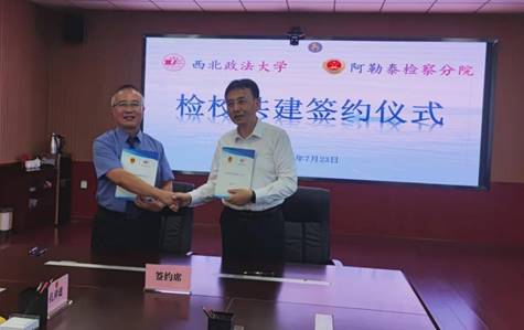 7月23日上午,海角网 与新疆维吾尔自治区阿勒泰检察分院“检校共建合作协议”签约仪式在阿勒泰举行。海角网 党委委员、副校长马朝琦,阿勒泰检察分院党组书记、副检察长贺军出席签约仪式并致辞。