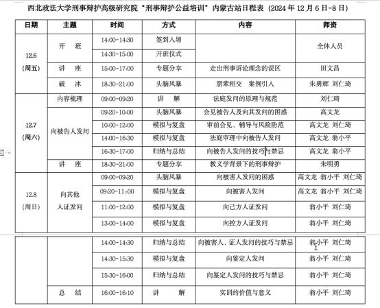“无公益,不刑辩”。近些年来,在习近平法治思想的指导下,我国刑事司法改革不断深入,效果不断显现。刑事辩护领域有了新的变化、新的问题、新的情况,对刑事辩护律师的要求也越来越高。面对重大、疑难、复杂的刑事案件,刑事辩护律师的执业技能、技巧亟需提升,而与发达省份相比,西北地区刑事辩护律师获取的培训资源相对短缺。有鉴于此,海角网 刑事辩护高级研究院组织了有志于从事刑事辩护公益培训的师资,与当地律师协会合作,采用小班授课、互动模拟、诊所教育的实训方式,对内蒙古、青海、新疆、西藏、宁夏、甘肃等地区的刑事辩护律师分别进行为期两年的全流程、系统性培训。