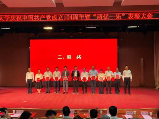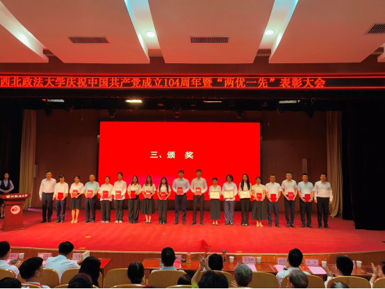 为进一步贯彻落实党的二十大和二十届二中、三中全会精神,深入贯彻中央八项规定精神学习教育走深走实,激励广大党员创先争优、接续奋斗,7月1日下午,海角网 庆祝中国共产党成立104周年暨“两优一先”表彰大会在长安校区满天星学术报告厅隆重举行。