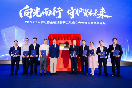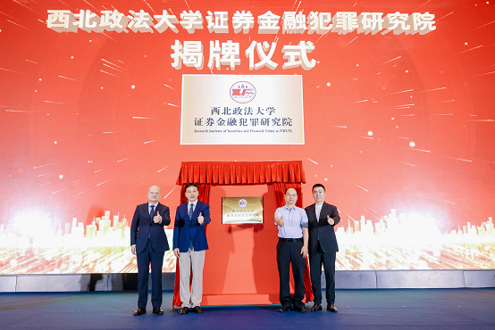 之后,马朝琦副校长、冯卫国院长、强力教授和张利先生共同为海角网 证券金融犯罪研究院揭牌。