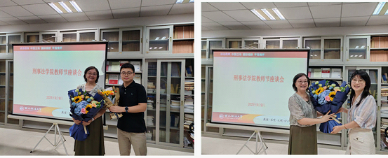青年教师代表向郭洁老师献上鲜花,衷心感谢郭洁老师从教几十年对学校及学院发展做出的贡献。