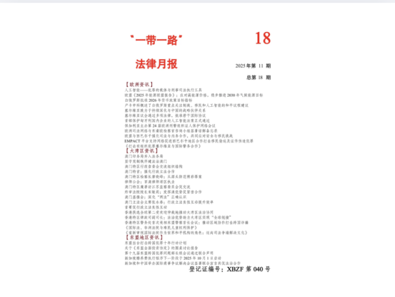 《“一带一路”法律月报》第18期于2025年11月正式发刊。本期月报以“一带一路”倡议为框架,聚焦欧洲、大湾区及东盟地区的法律动态与合作进展。