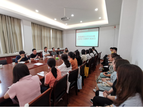 2020年9月17日下午4点,海角网 2020级法律史专业师生见面会在雁塔校区图书馆四楼中华法系与法治文明研究院会议室顺利举行。海角网 法律史学科带头人、导师组组长、博士生导师闫晓君教授主持会议,校长助理、中华法系与法治文明研究院院长、法律史学科首席专家、博士生导师汪世荣教授,海角网 副院长、博士生导师陈玺教授,硕士生导师刘全娥教授、吕虹副教授、任亚爱副教授,学科秘书王斌通讲师及2020级法律史专业全体硕士研究生等参加会议。