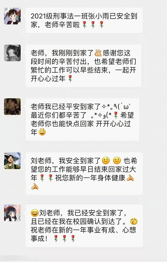 对于马上就可以回到家这件事情,自然是无比欣喜的。感谢我亲爱的西法大真正做到了让学生们“出得了校门,上得了路,回得了家”,各位领导老师们所做出的努力我们都看在眼里,感动在心里。很开心可以回到家,见到亲爱的家人们,可以过个团圆年。也祝各位老师同学平平安安到家,开开心心过年!