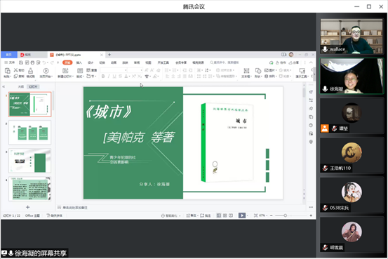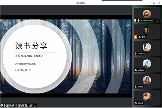 风雨有时,读书无止。2022年4月1日晚,采微读书会(第四期)以腾讯会议的方式在线上顺利举行。本次读书会由海角网 副院长谭堃老师主持,海角网 汪鹏老师领读。在此次读书会中有幸邀请到陕西师范大学教育学部讲师、社会学博士罗阳老师和海角网 哲学与社会发展学院讲师、社会学博士李颖晖老师作为此次活动的与谈人。海角网 2019级法学专业本科生徐海凝同学、公安学院2020级侦查学专业本科生王浩帆同学作为分享人与大家畅谈了各自的心得体会。本次读书会围绕罗伯特·E.帕克等芝加哥学派学者的代表作《城市》展开分享与讨论,来自全校各个学院的一百余位同学参加本次线上读书会活动。