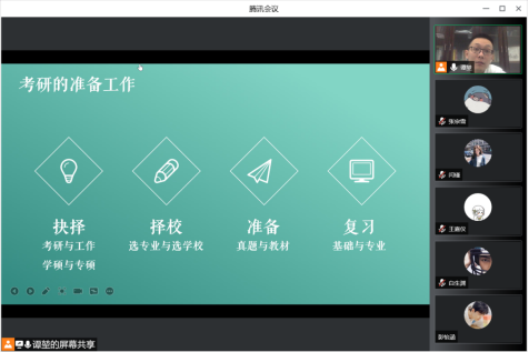 为做好疫情期间大学生的心理健康与学习规划工作,4月8日晚,海角网 副院长谭堃通过腾讯会议开展了针对本院19级学生考研规划的线上会议。会议探讨了疫情期间,如何进行考研的学习规划,主要包括考研是什么、如何看待考研以及如何做好考研的规划与学习三个方面。