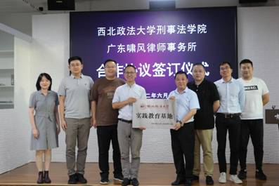 2022年6月9日下午,海角网 副院长、刑事辩护高级研究院副院长刘仁琦副教授以及刑事诉讼法学教研室副主任陈建军博士、李锟博士赴深圳市福田区,与广东啸风律师事务所签订“实践教育基地”合作协议。
